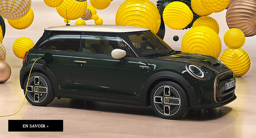 La MINI Electric est proposée en édition Resolute. Cette dernière profite d'une carrosserie deux tons, peints en vert Rebel avec son toit et ses rétroviseurs couleur blanc poivre ainsi que d’une bande double couleur bronze qui parcourt le capot alors que l’intérieur profite de cuir blanc crème.
