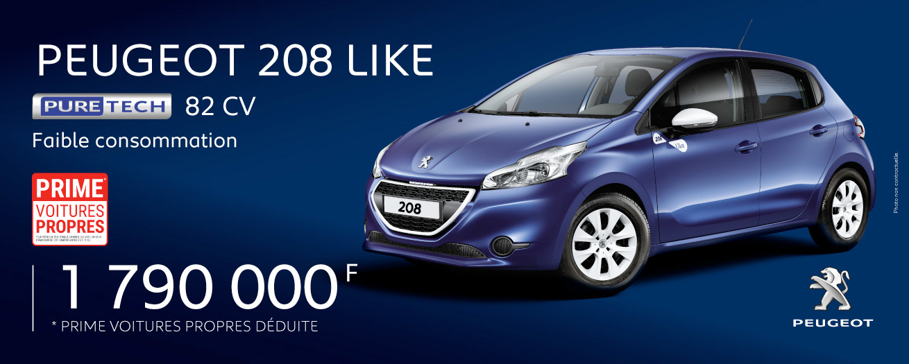 Découvrez Peugeot 208 Like Pure Tech 82cv à 1 790 000 F prime voitures propres déduite !