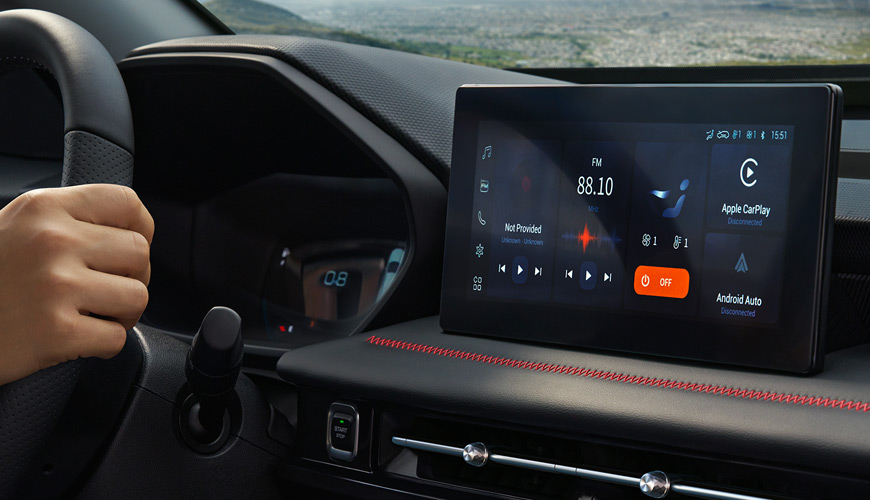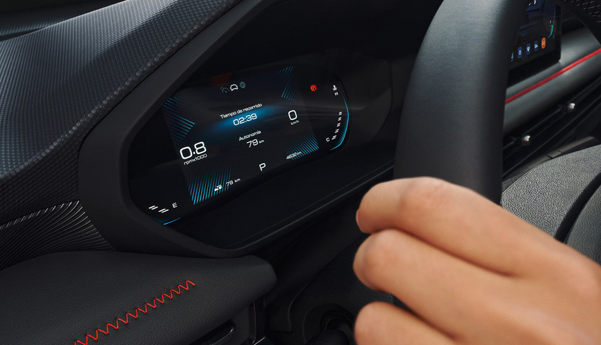 C'est un véhicule conçu pour les esprits avisés. Appréciez le toucher de la palette de couleurs intérieures Premium Black, avec ses garnitures et ses coutures rehaussées de rouge (version RS).