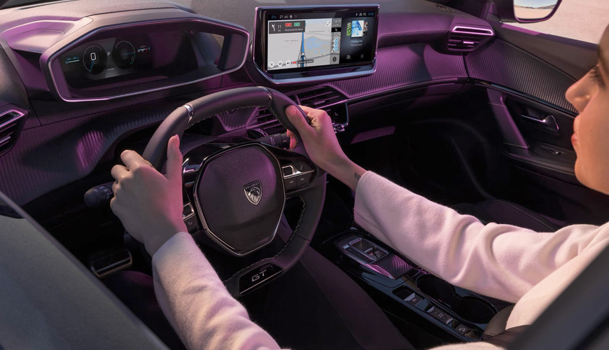 L'habitacle se distingue par l'incomparable Peugeot i-Cockpit® comprenant un volant compact et un écran tactile HD de 10 pouces.